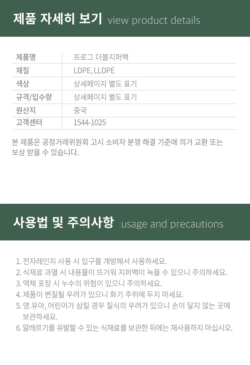 | 품명 및 모델명 | 프로그 더블 지퍼백 혼합세트 | 재질 | 컨텐츠 참조 |