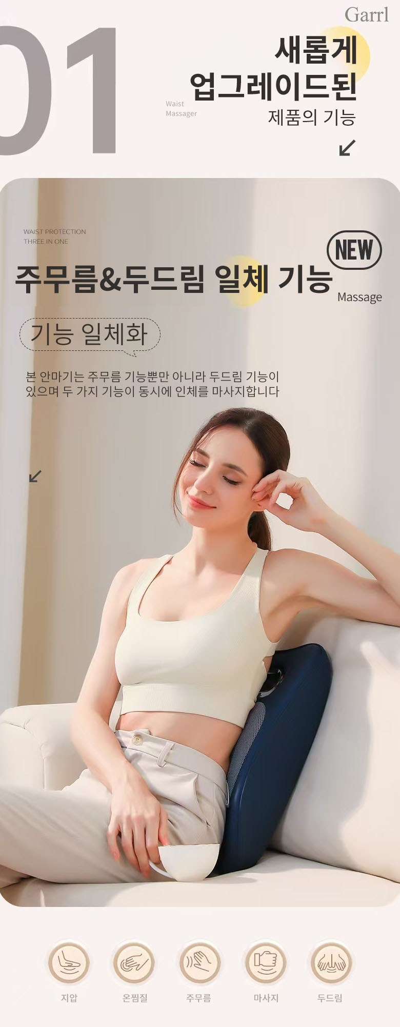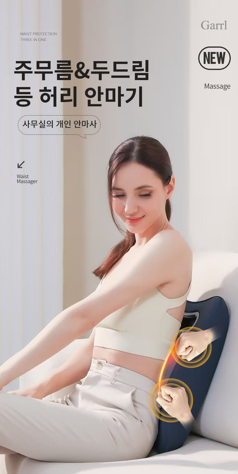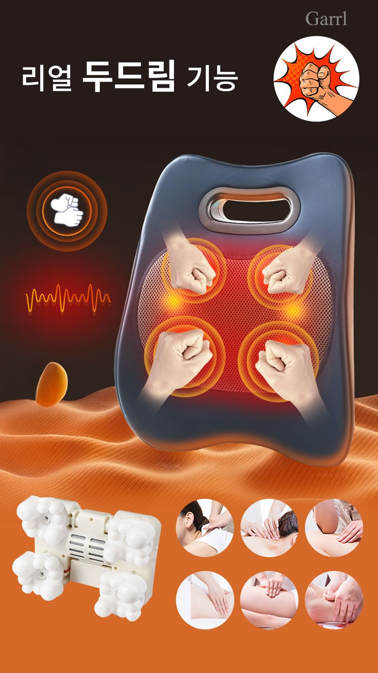 Garrl 주무름 두드림 등 허리 안마기 두드림 쿠션안마기 두드림 마사지기 온열 3단계 강도