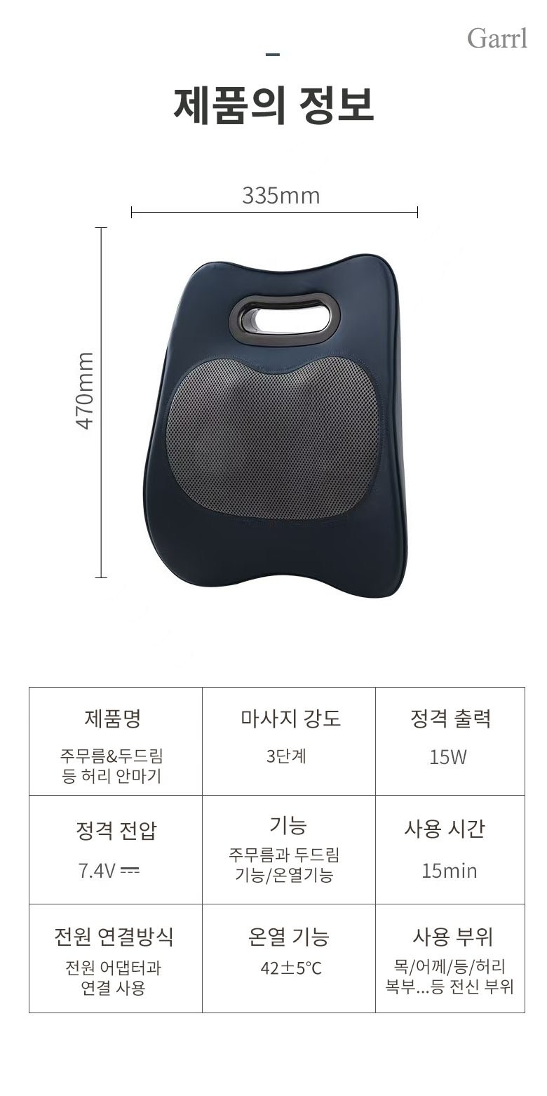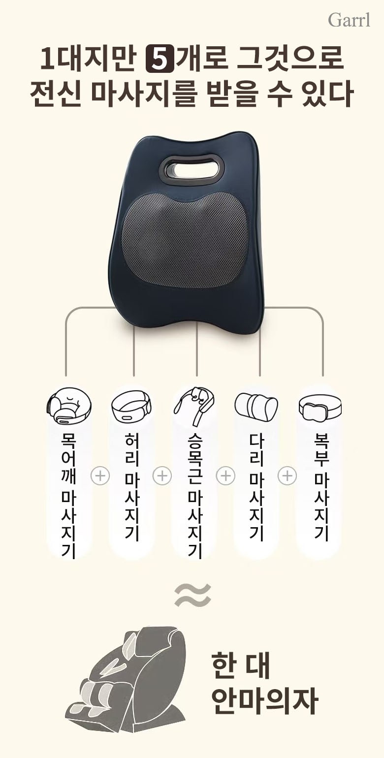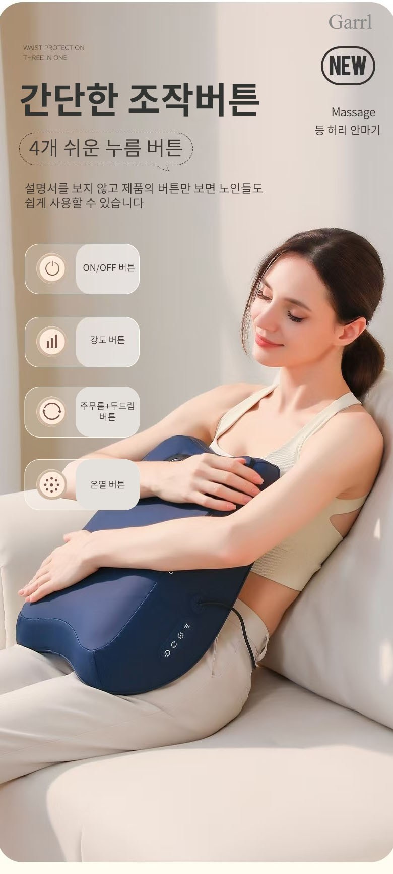 Garrl 주무름 두드림 등 허리 안마기 두드림 쿠션안마기 두드림 마사지기 온열 3단계 강도