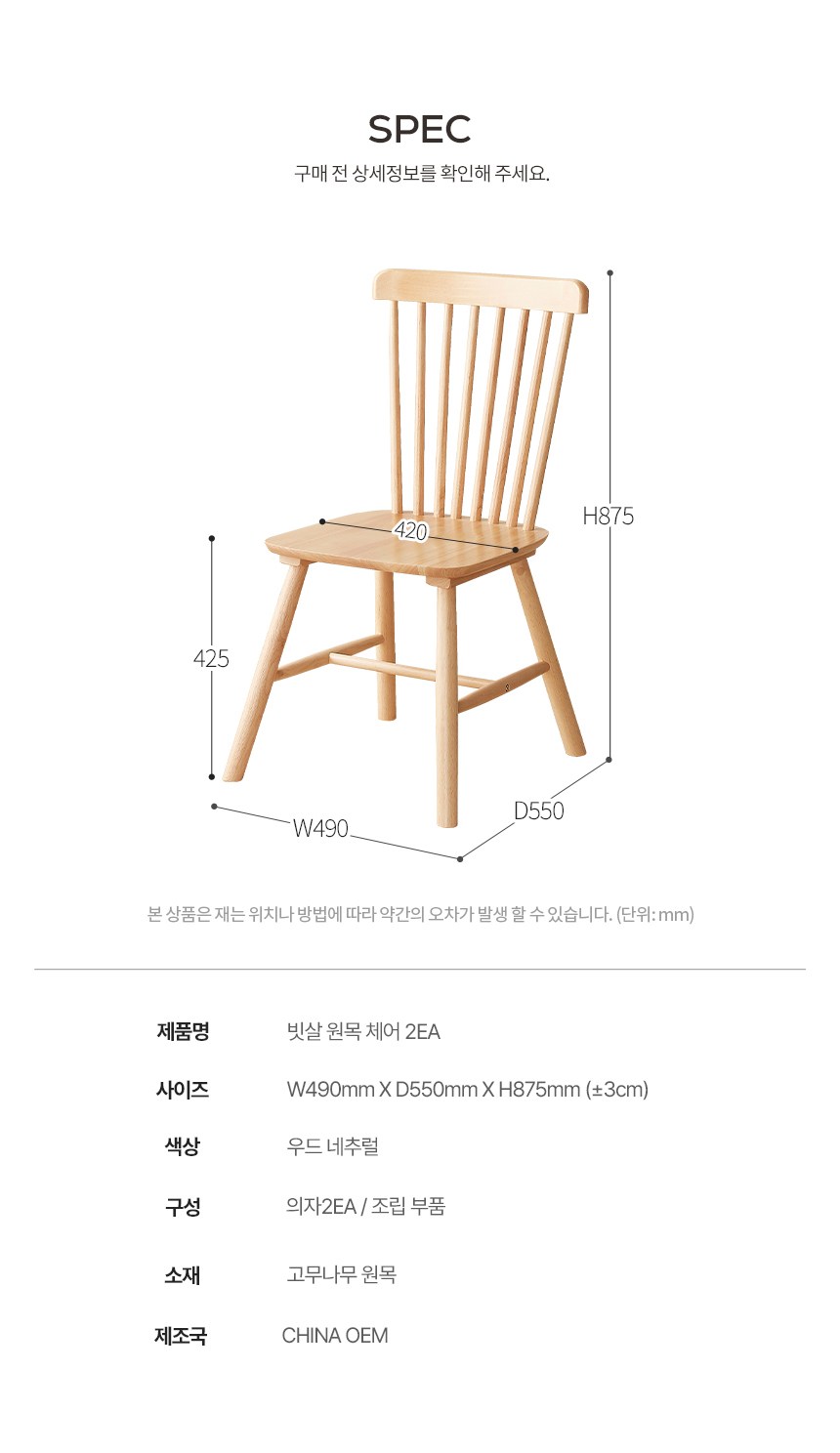 | 품명 | 로엔 고무나무 원목 빗살 식탁 의자 1+1 | KC 인증정보 | 해당없음 |