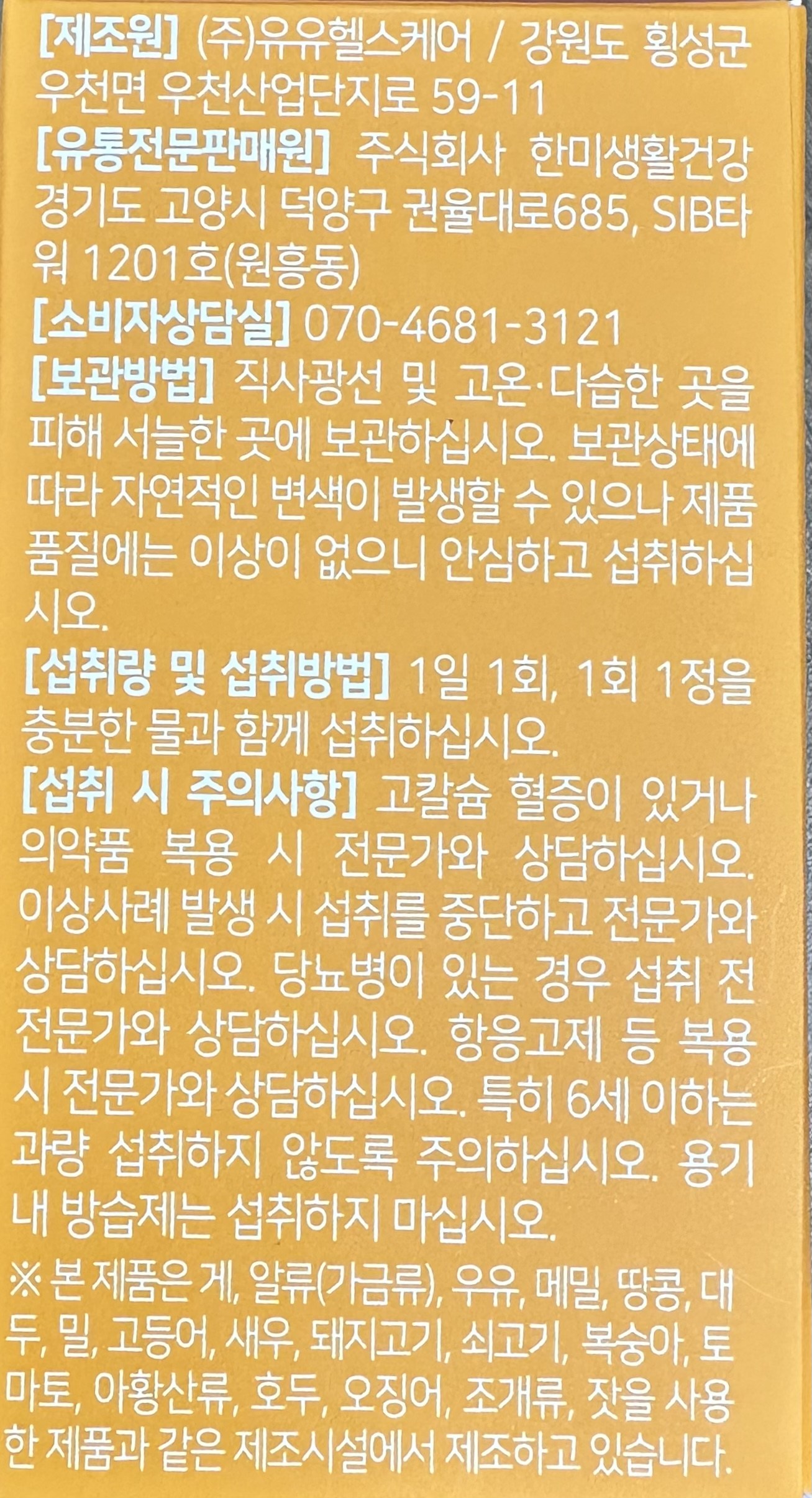 - 건강기능식품: 인증 있음