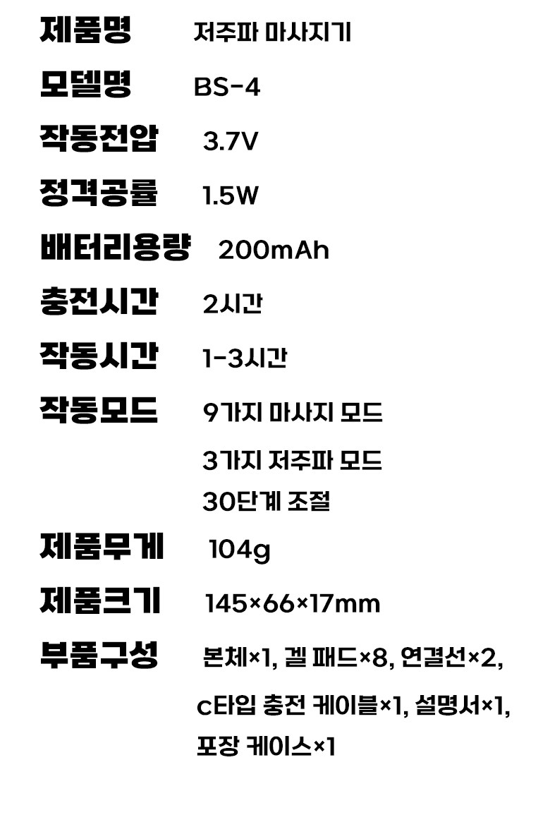 | 품명 및 모델명 | Gaayou 저주파 마사지기 / ES-4 | KC 인증정보 | R-R-WGTC-ES-4 / XU102171-20001B |