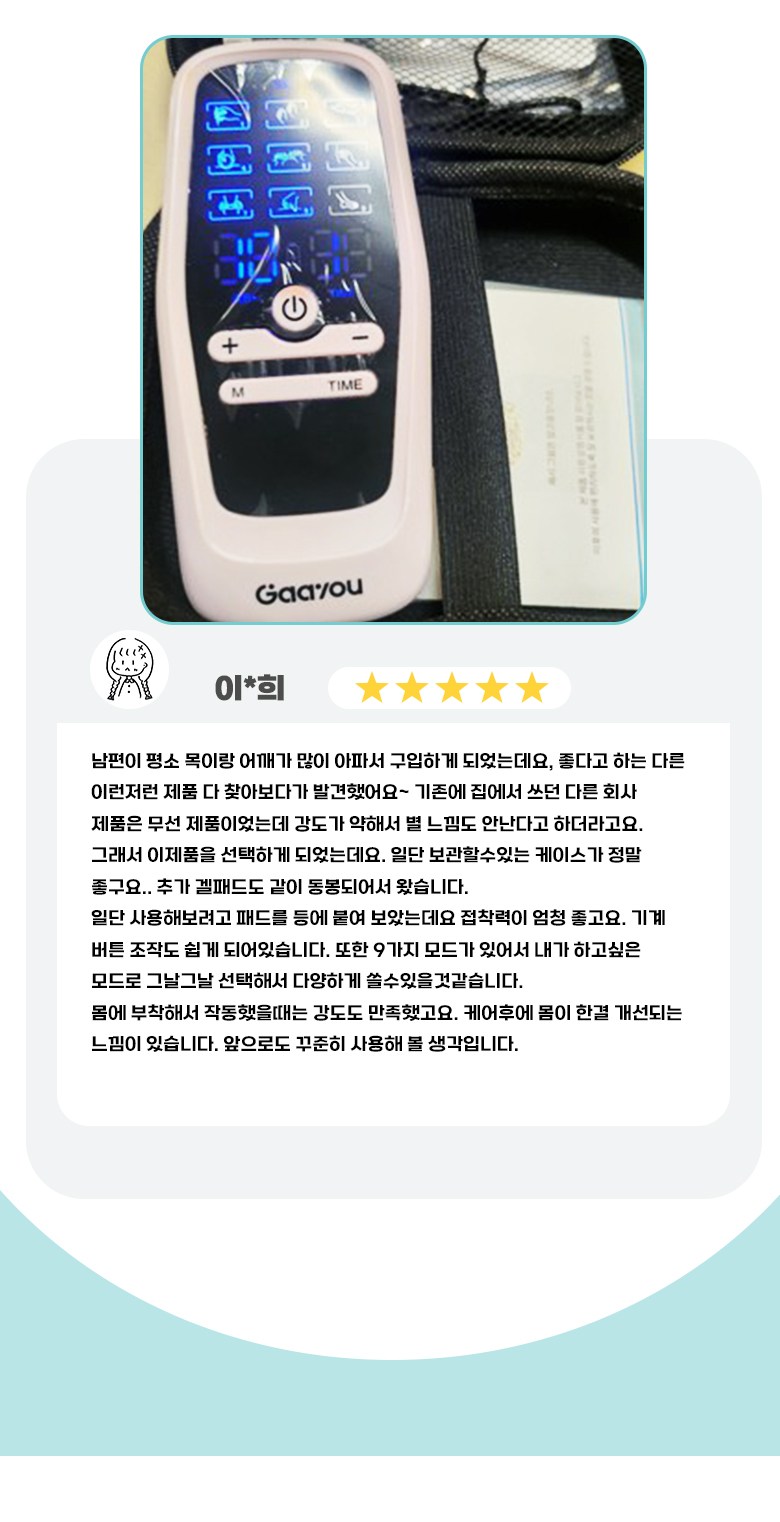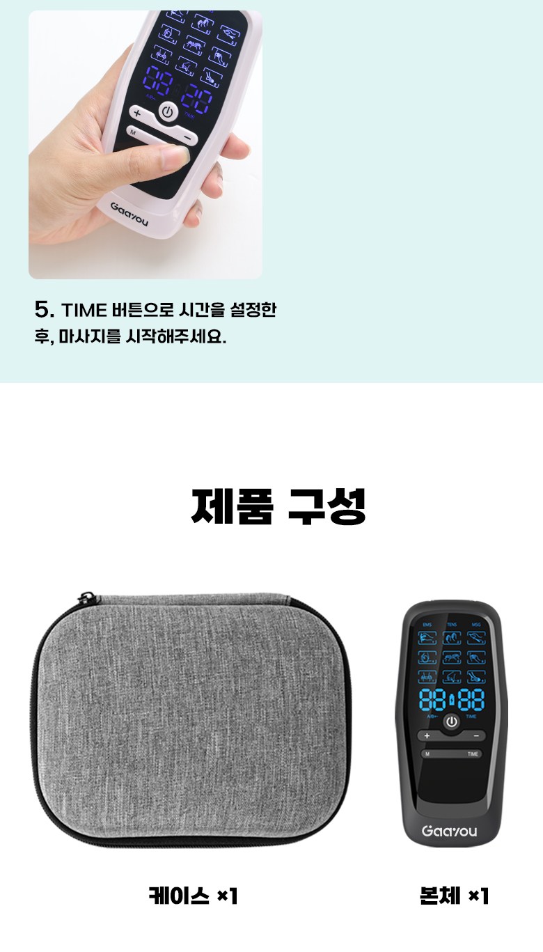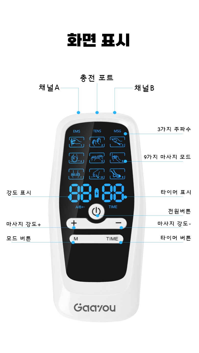 Gaayou 저주파 마사지기 전신 EMS 마사지 듀얼 채널 30단계 강도 9가지 모드 수납박스 전용 겔패드 패키지