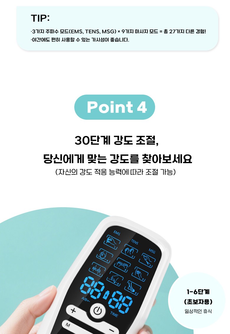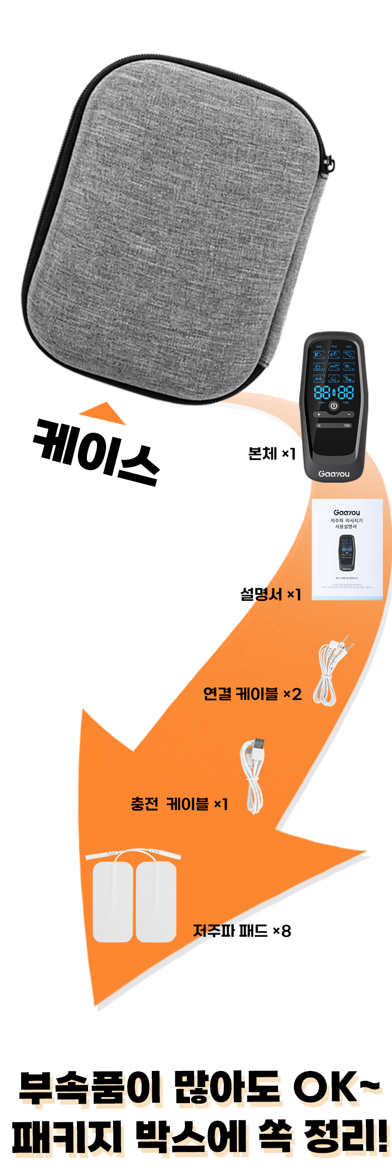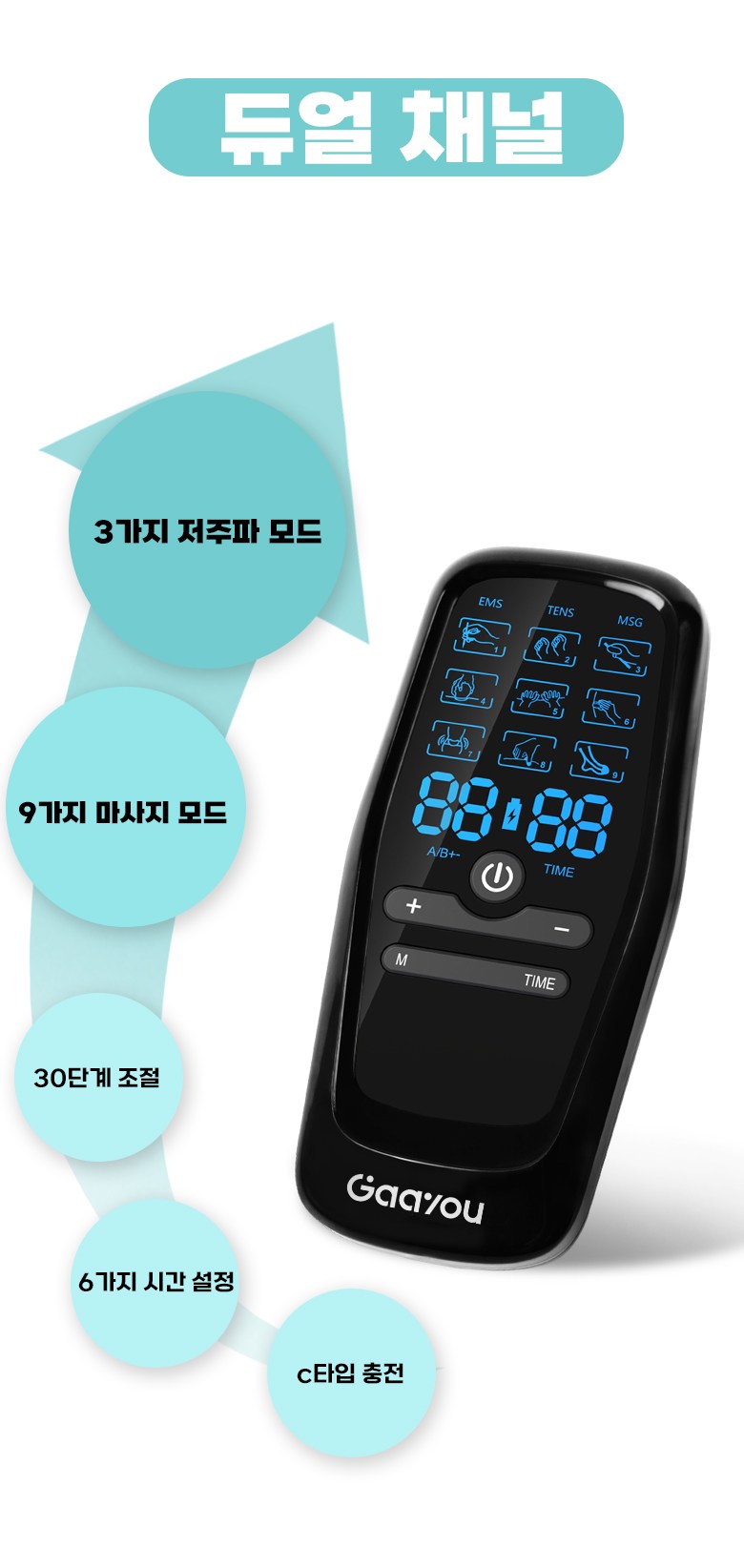 Gaayou 저주파 마사지기 전신 EMS 마사지 듀얼 채널 30단계 강도 9가지 모드 수납박스 전용 겔패드 패키지
