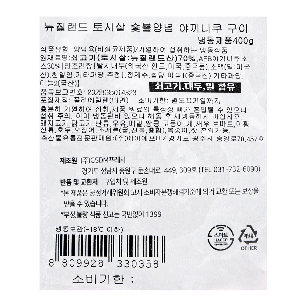 | 제품명 | 뉴질랜드 토시살 숯불양념 야끼니쿠 구이 | 식품의 유형 | 컨텐츠 참조 |
