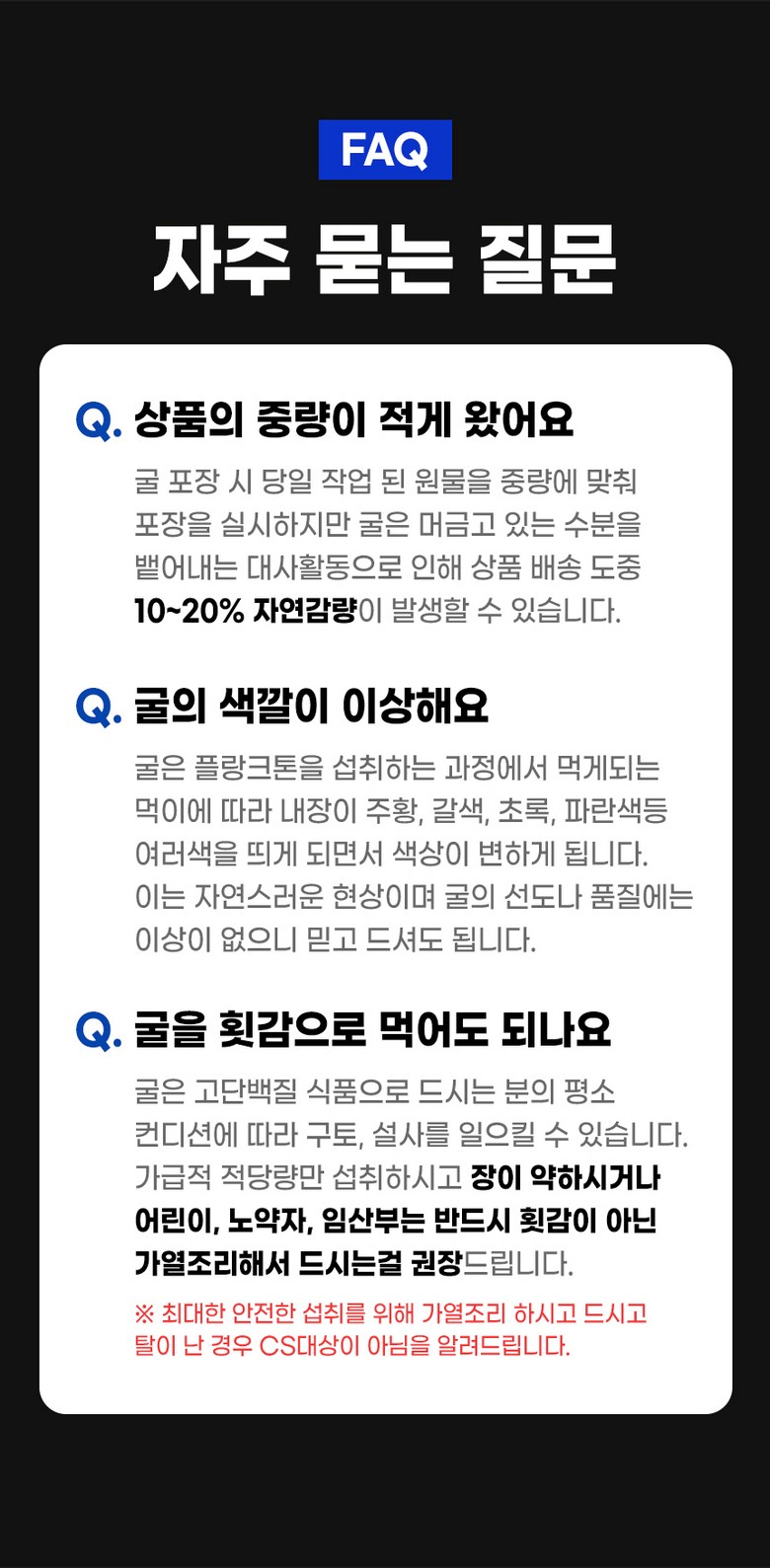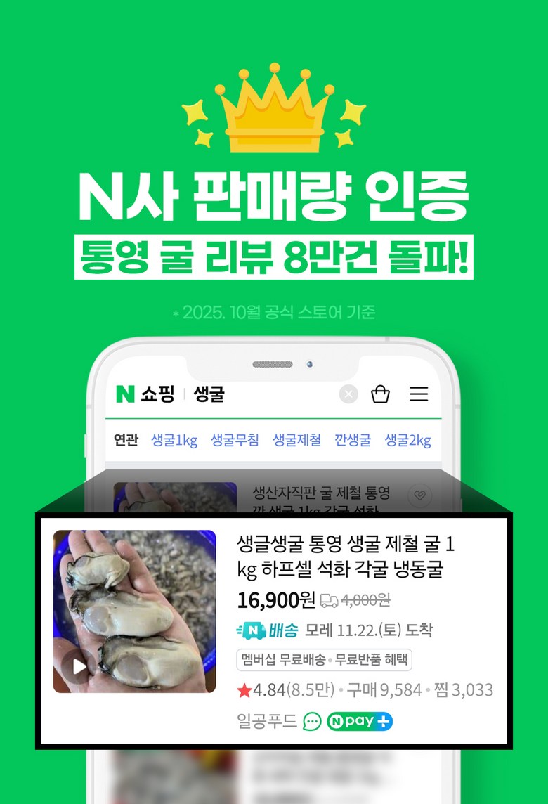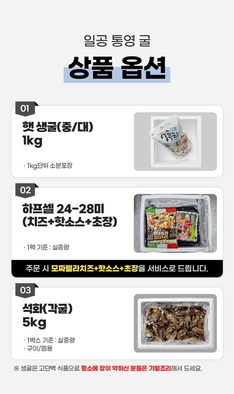 중량 × 수량: 생굴(중)3kg × 1개