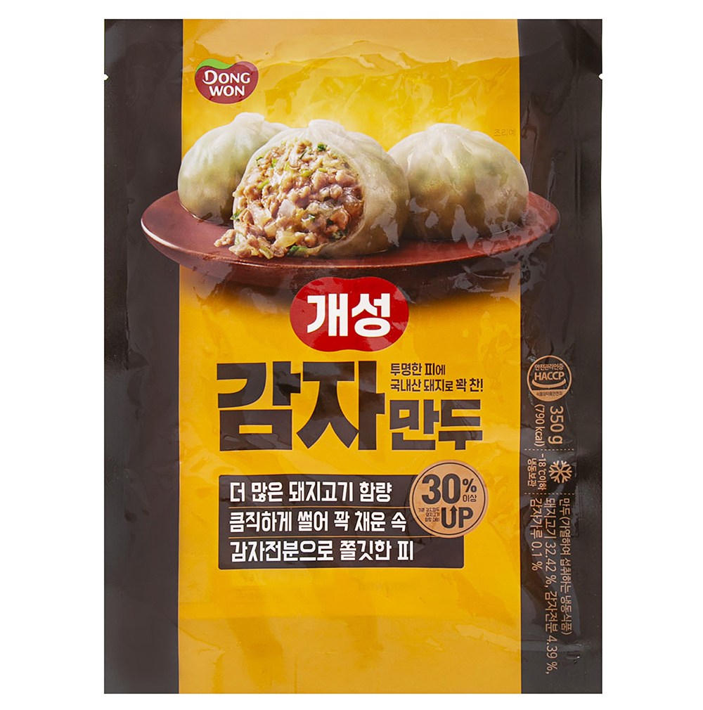 쫀득쫀득한 식감이 돋보이는 개성식 감자만두예요. 감자가루를 사용해 쫄깃한 만두피와, 갖은 재료를 알차게 채운 속이 매력적인데요. 돼지고기부터 부추, 각종 채소를 큼직하게 썰어 넣었어요. 개성식 만두답게 정갈한 모양과 깔끔한 감칠맛이 일품이니, 촉촉하게 쪄서 즐겨보세요.