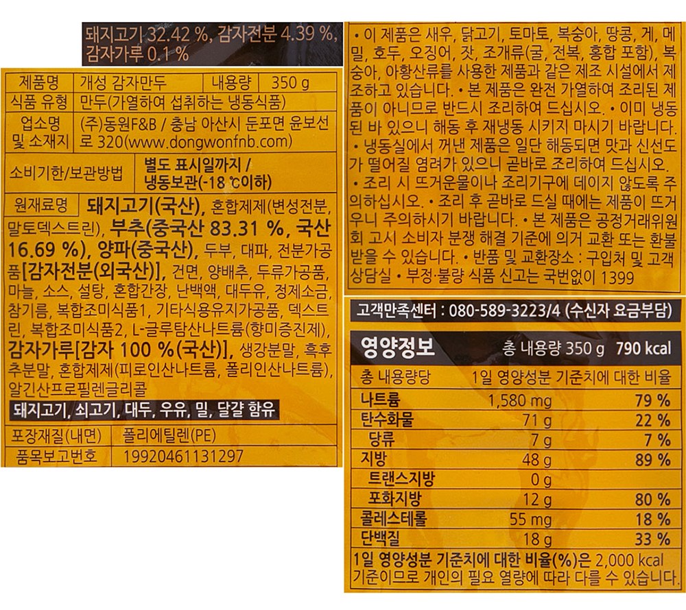 | 포장단위별 내용물의 용량(중량), 수량 | 350g x 1개입 x 2개 | 원재료명 및 함량 | 컨텐츠 참조 |