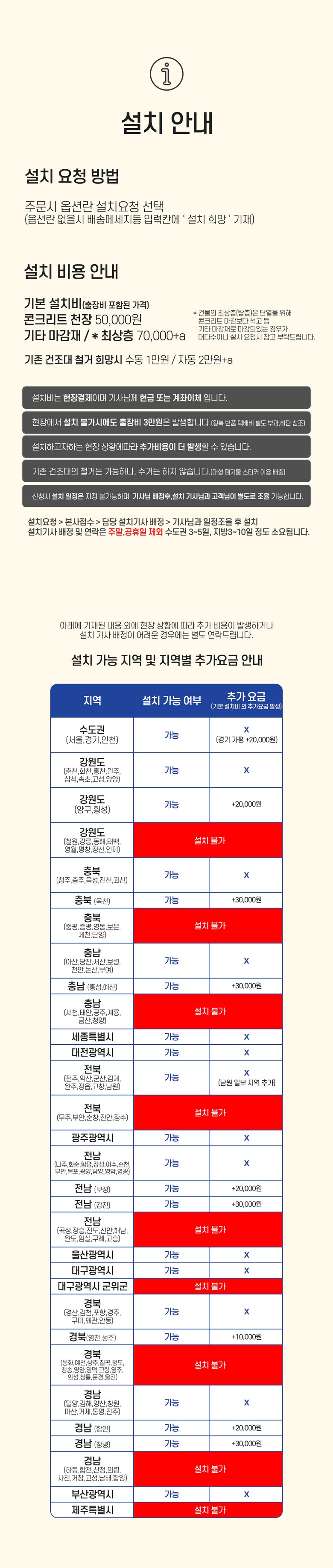 | 배송방법 | 순차배송 | 배송비 | 무료배송 · 도서산간 추가 배송비 - 제주 지역: 5,000원 - 도서산간 지역: 5,000원 |