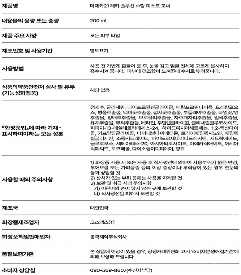 | 화장품제조업자, 화장품책임판매업자 및 맞춤형화장품판매업자 | 상품 상세페이지 참조 | 제조국 | 상품 상세페이지 참조 |