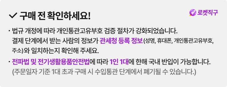 | 묶음배송 여부 | 로켓직구 상품 중, 한번에 결제된 상품은 가능 |