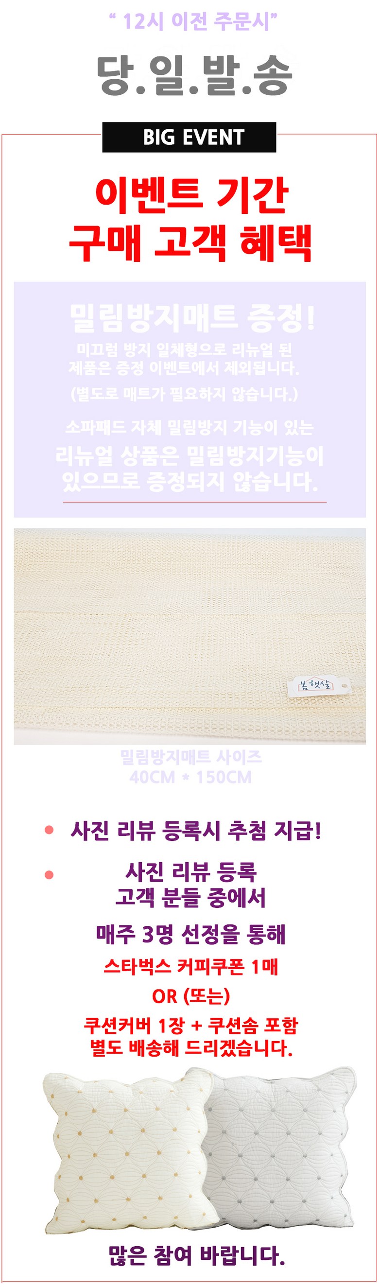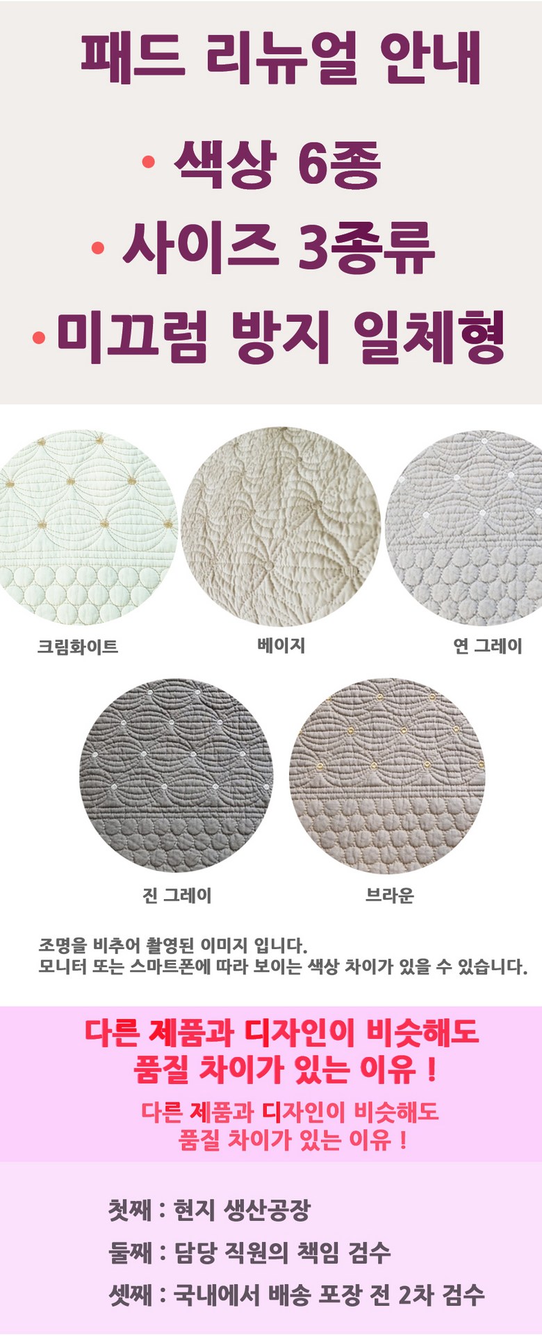 자체 OEM 제작 상품으로 겉면 소재, 충전 솜, 패드 색감이 다릅니다.