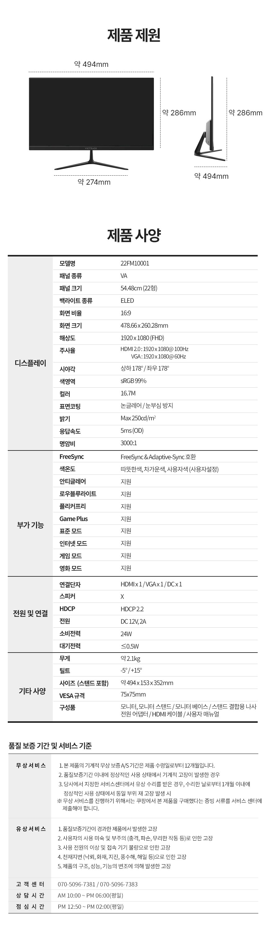 | 품명 및 모델명 | 22FM10001 | KC 인증정보 | 모니터: 유/KC마크, R-R-Cif-22FM10001, 어댑터: HU101238-22001A, R-R-Dlp-ZC481204000KR |