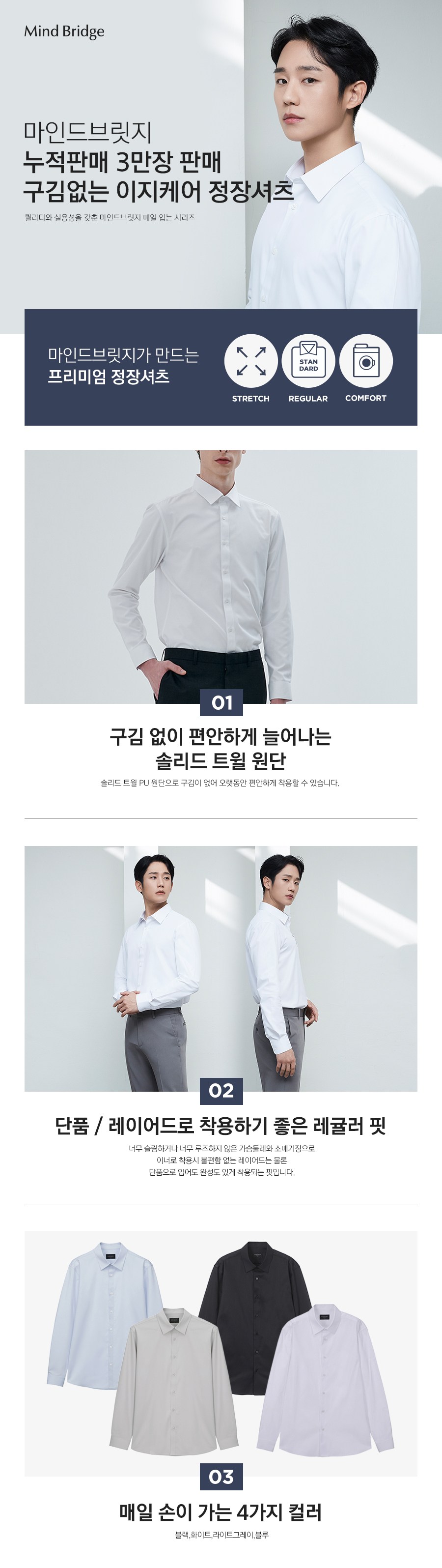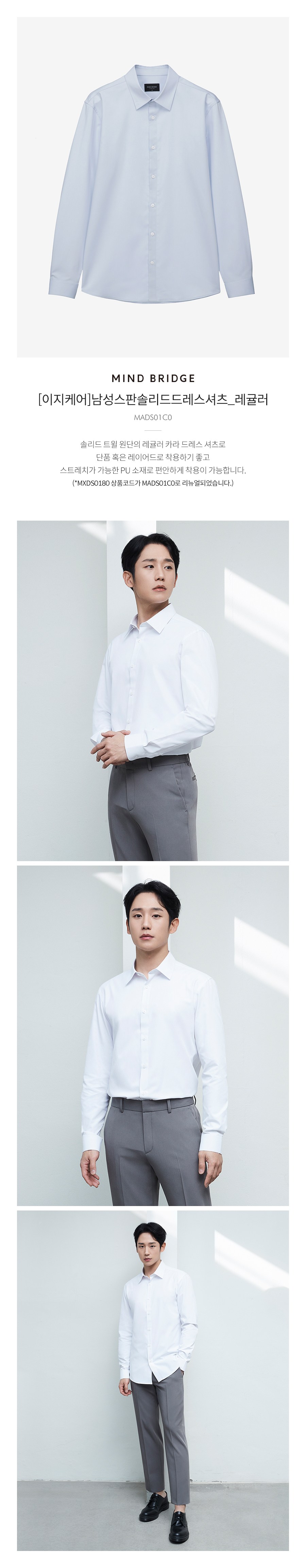 마인드브릿지 남성용 이지케어 스판 솔리드 드레스 셔츠 레귤러 MADS01C0