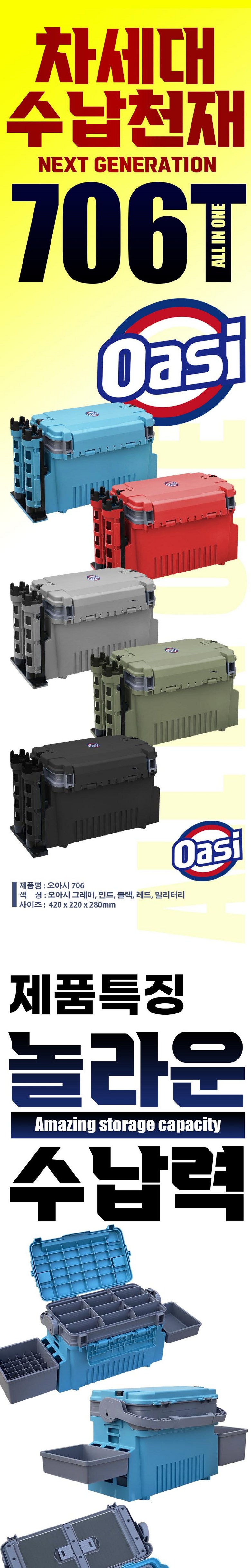 오아시 706T / 차세대 수납천재 올인원 태클박스 / 36구 에기 트레이 소품 트레이 지그헤드 보관함 12칸 소품 케이스 하단 대형 수납 공간 / 모든 기능을 하나로 완성