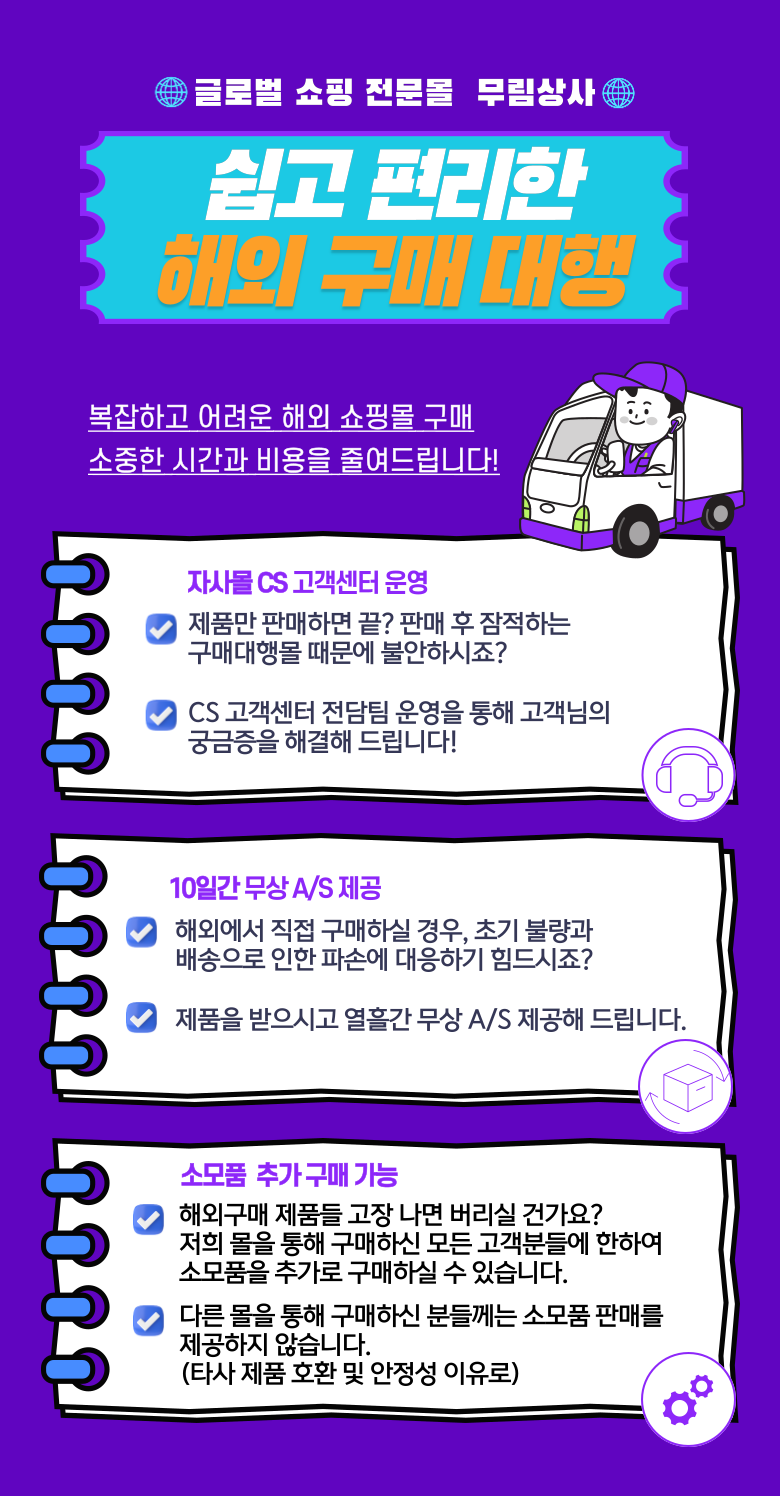 | 배송방법 | 해외직구 | 배송비 | 무료배송 - 도서산간 지역 배송불가 |