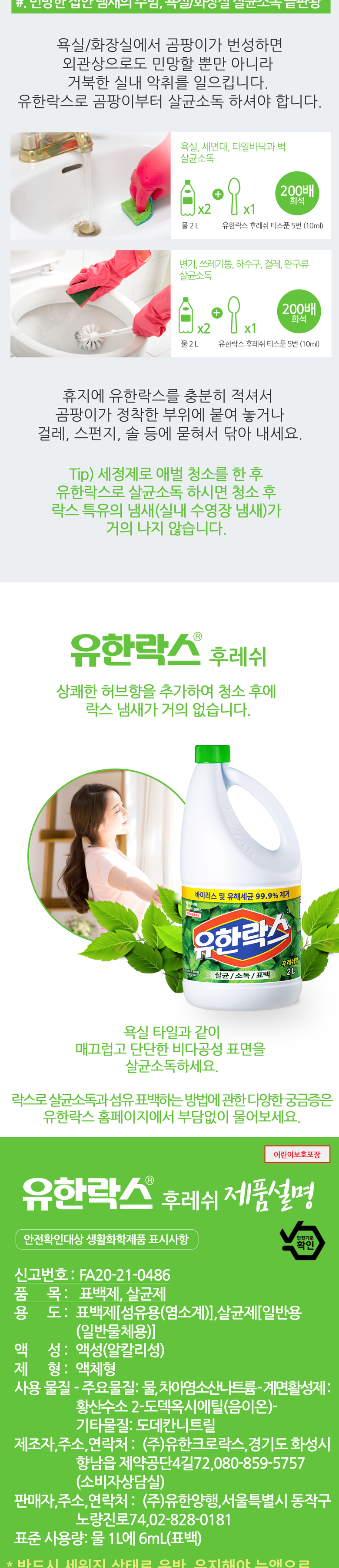 | 품목 및 제품명 | 상품 상세페이지 참조 | 용도(표백제의 경우 계열을 함께표시) 및 제형 | 상품 상세페이지 참조 |