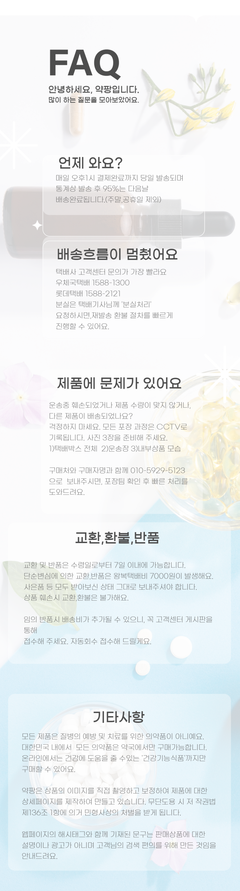 - 상품문의 및 후기게시판을 통해 취소나 환불, 반품 등은 처리되지 않습니다.