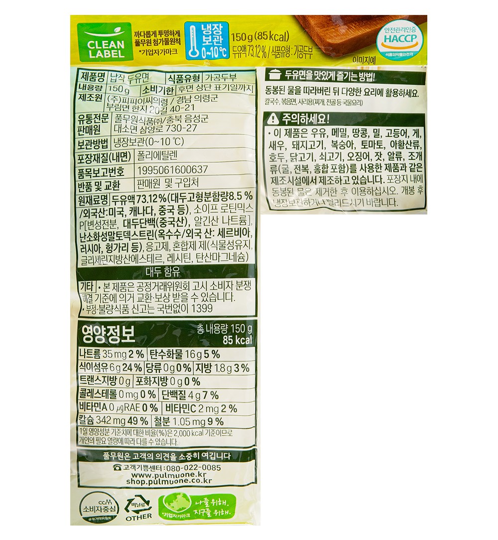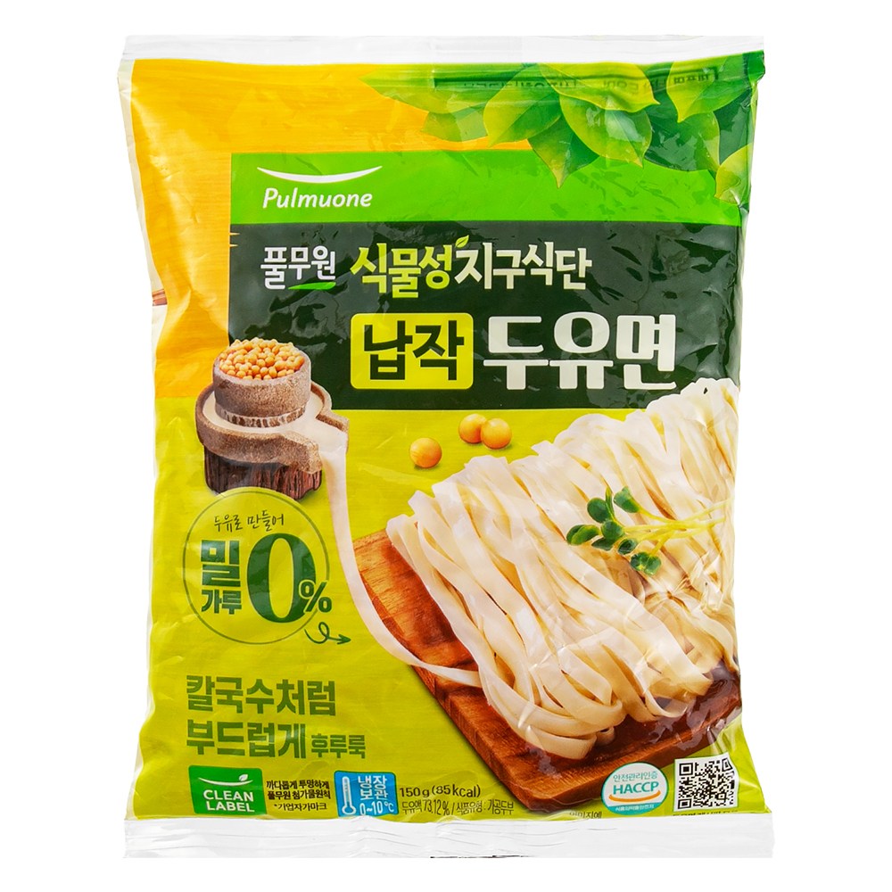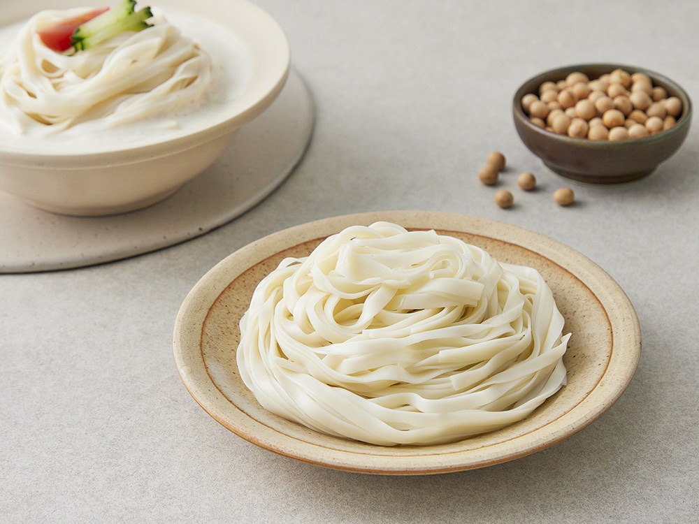 헹구거나 삶을 필요 없이 요리할 수 있는 납작 두유면이에요. 밀가루 대신 두유액으로 만든 식물성 두유면인데요. 식감이 좋아, 칼국수처럼 부드럽게 후루룩 드실 수 있답니다. 잘 볶아 드셔도 좋고, 전골이나 찌개에 사리로 넣어 드셔도 좋아요.