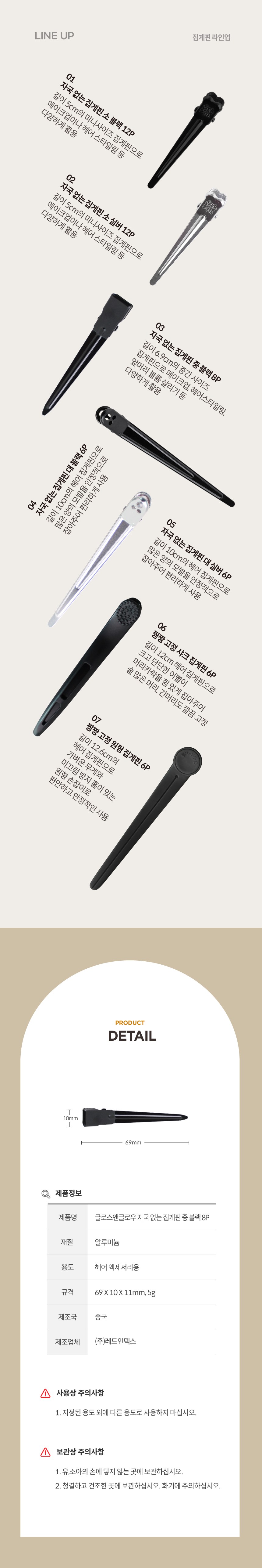 | 품명 및 모델명 | 글로스앤글로우 자국 없는 집게핀 중 블랙 8P | 인증/허가 사항 | 해당 없음 |