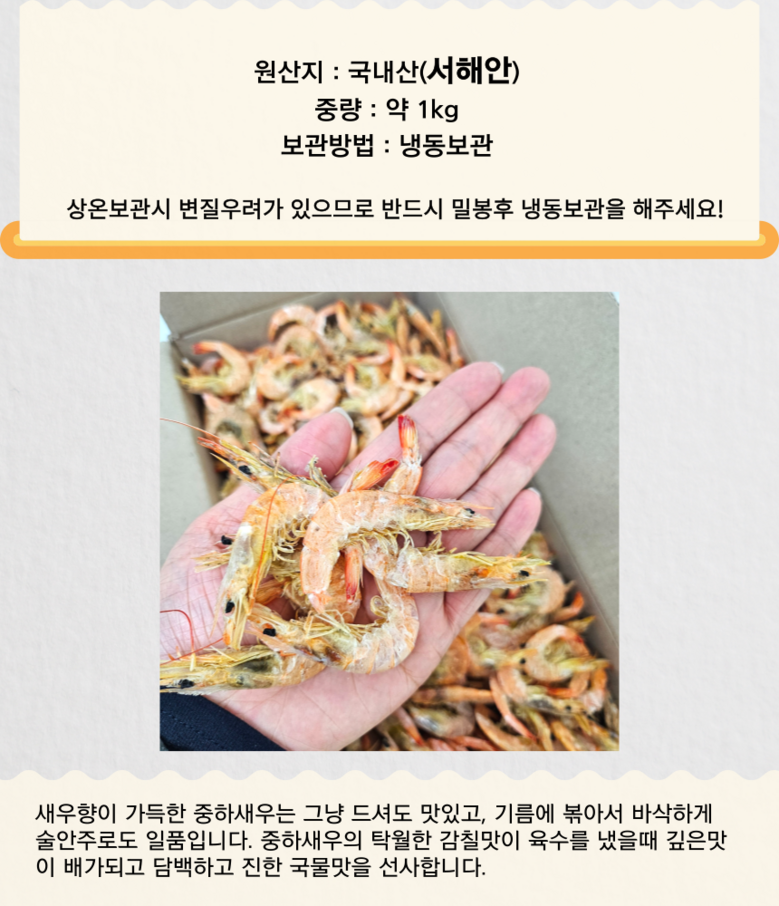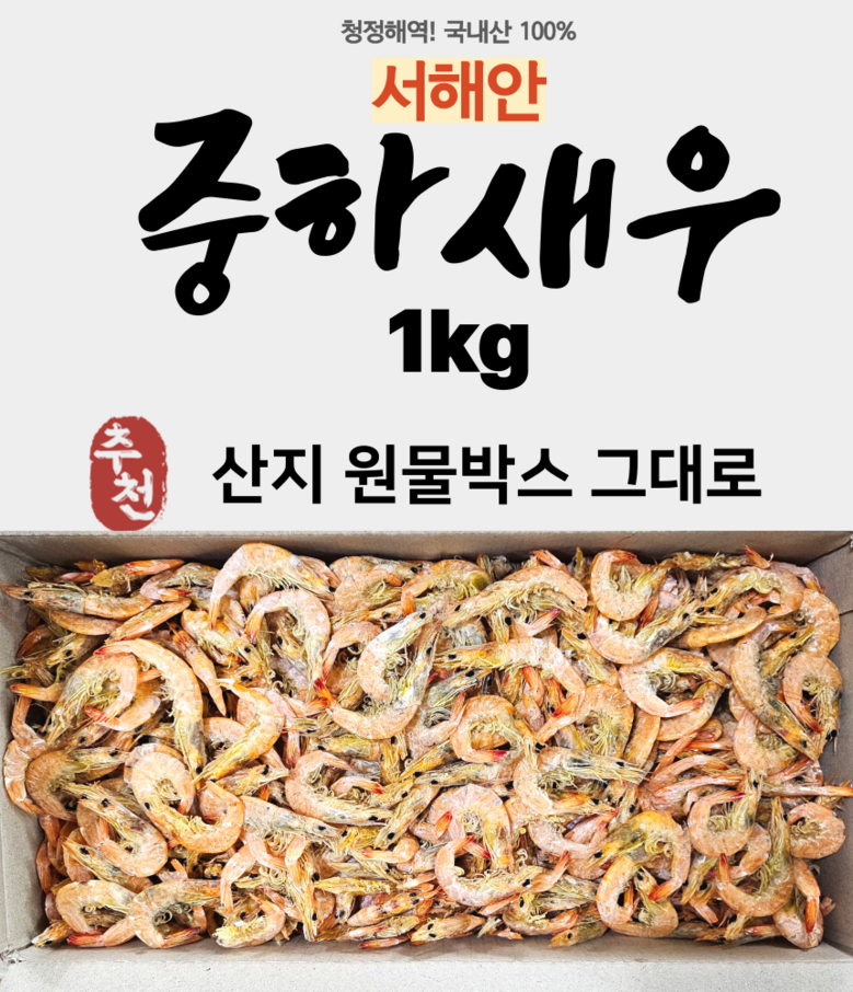 | 품목 또는 명칭 | 중하새우 | 포장단위별 내용물의 용량(중량),수량,크기 | 1kg |