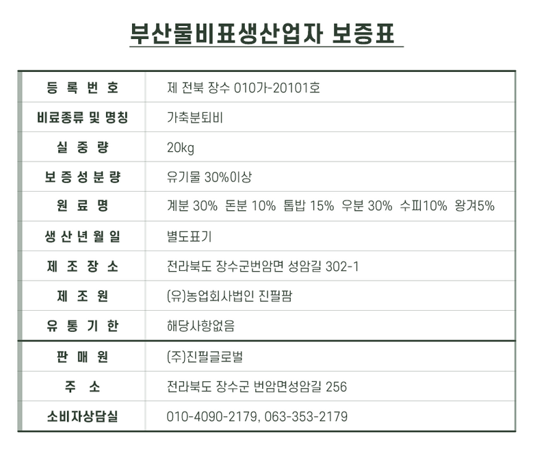 상호/대표자 | 주식회사 진필글로벌 / 전제영 | 사업장 소재지 | 전라북도 장수군 번암면 성암길 256 주식회사 진필글로벌 |