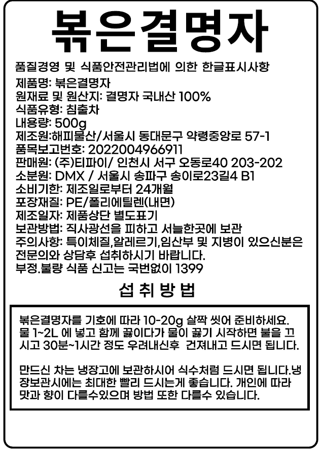 | 포장단위별 내용물의 용량(중량), 수량 | 500g x 4개 | 원재료명 및 함량 | 컨텐츠 참조 |