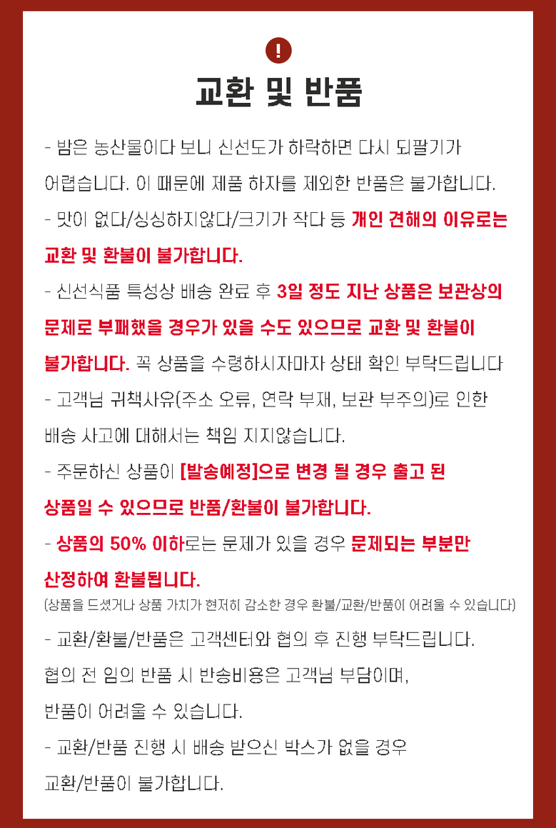 - ㆍ교환/반품에 관한 일반적인 사항은 판매자가 제시사항보다 관계법령이 우선합니다.
