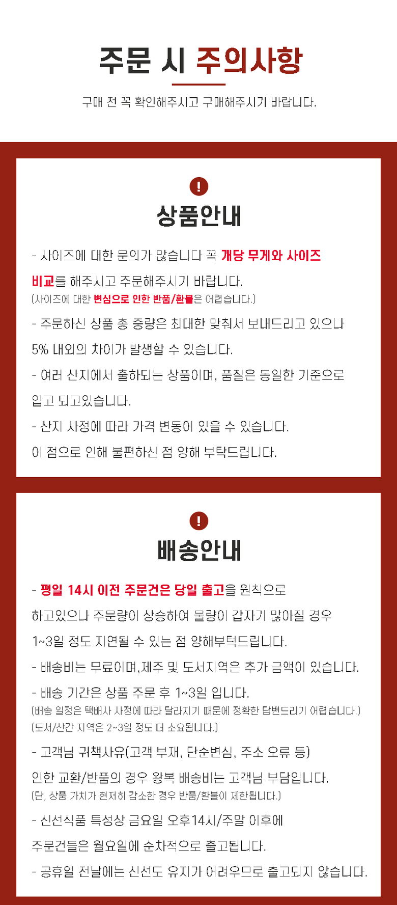 | 배송방법 | 신선/냉장/냉동 | 배송비 | 무료배송 - 도서산간 지역 배송불가 |