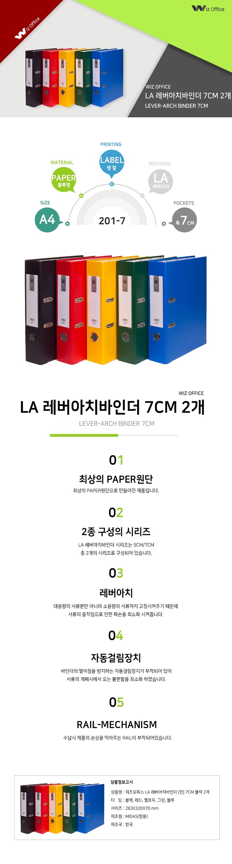 | 품명 및 모델명 | 위즈오피스 LA 레버아치바인더 | 인증/허가 사항 | 해당없음 |