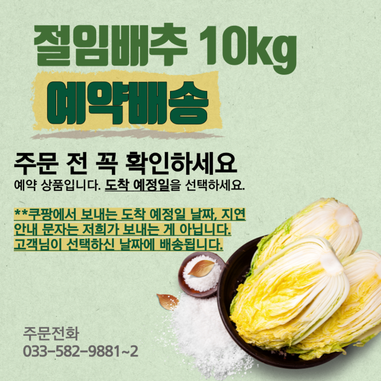 | 품목 또는 명칭 | 절임배추 | 포장단위별 내용물의 용량(중량),수량,크기 | 10kg |