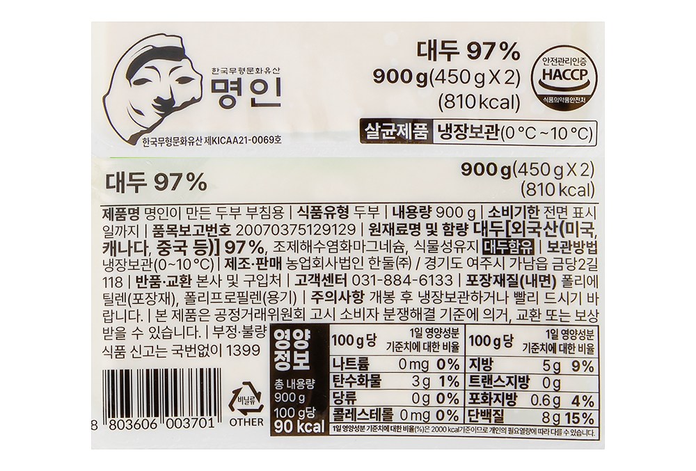 | 포장단위별 내용물의 용량(중량), 수량 | 450g x 2개 | 원재료명 및 함량 | 컨텐츠 참조 |