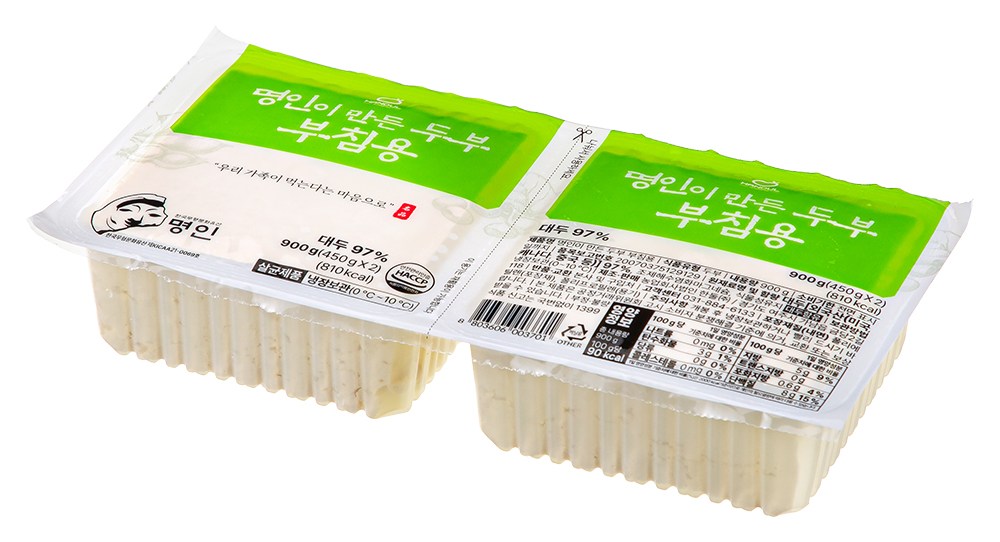두부는 어떤 요리에 사용하는지에 맞춰 골라야 하지요. 부침용으로 단단하게 만든 두부를 소개할게요. 노릇하게 부쳐도 잘 부서지지 않아 요리하기 편합니다. 한입 드시면, 고소한 풍미가 입안에 가득 번져요. 그대로 즐겨도 좋고, 김치를 곁들여도 훌륭해요.