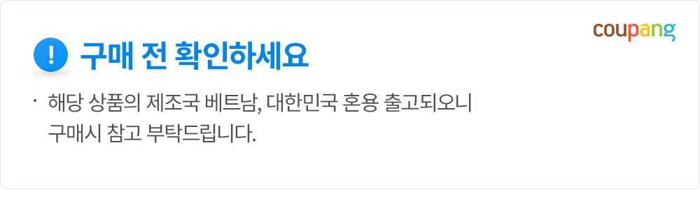 | 제조자(수입자) | (주)평안 / 업체미제공 | 제조국 | 대한민국, 베트남 (다양한 국가에서 제조되는 상품으로 랜덤으로 제공될 수 있습니다.) |
