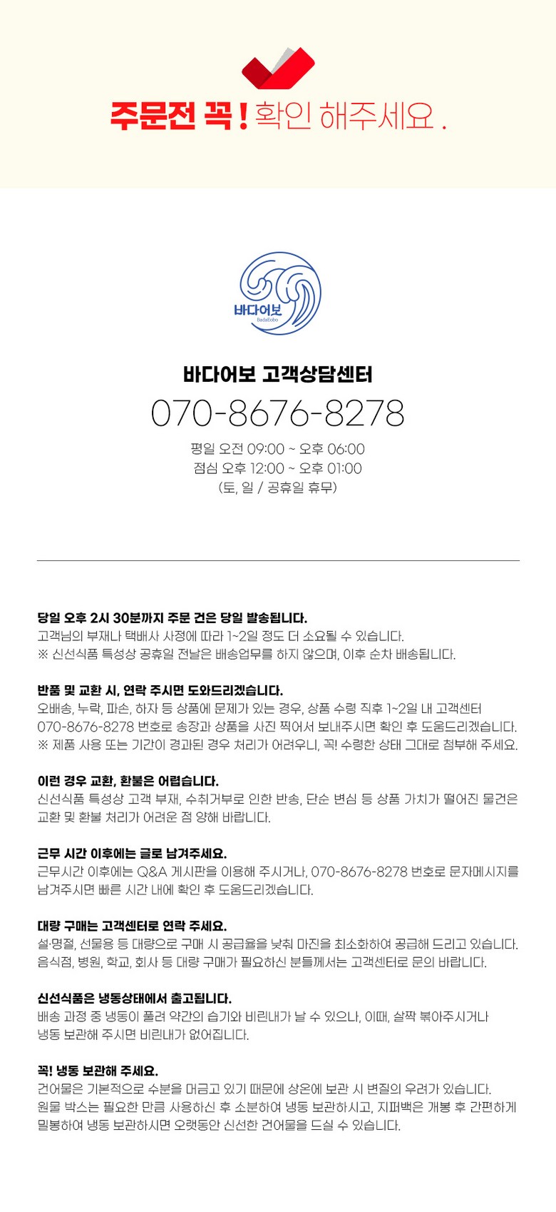 | 생산자(수입자) | 주식회사바다어보 | 원산지 | 국산 |