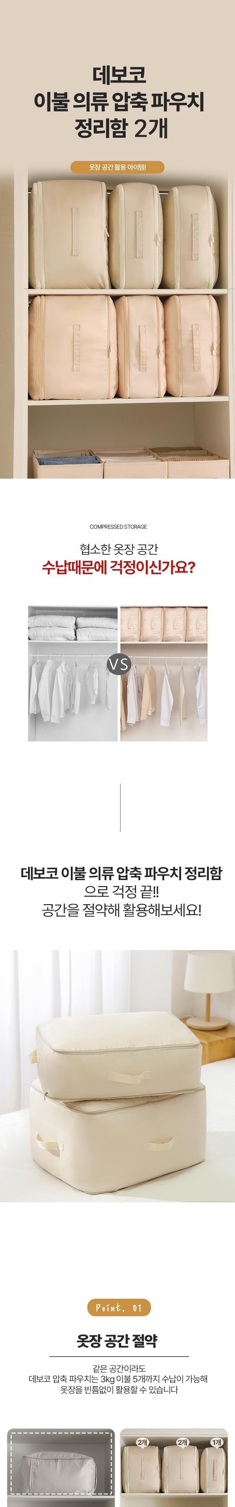 | 품명 및 모델명 | 데보코 이불 의류 압축 파우치 정리함 1+1 | 인증/허가 사항 | 해당없음 |