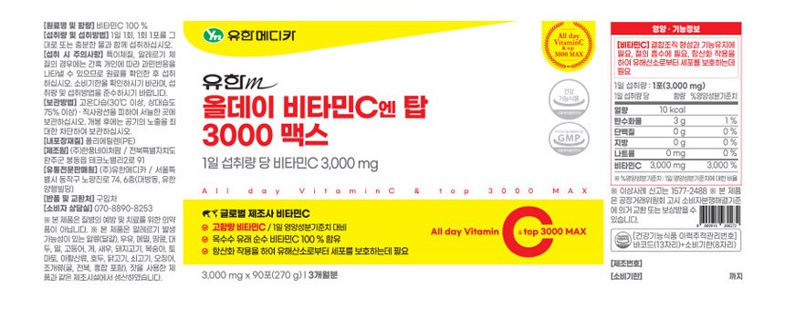 | 제품명 | 올데이 비타민C엔 탑 3000 맥스 | 제조업소의 명칭과 소재지 | 컨텐츠 참조 |