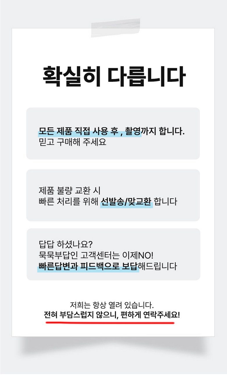 - ㆍ모니터 해상도의 차이로 인해 색상이나 이미지가 실제와 달라, 고객이 단순 변심으로 교환/반품을 무료로 요청하는 경우