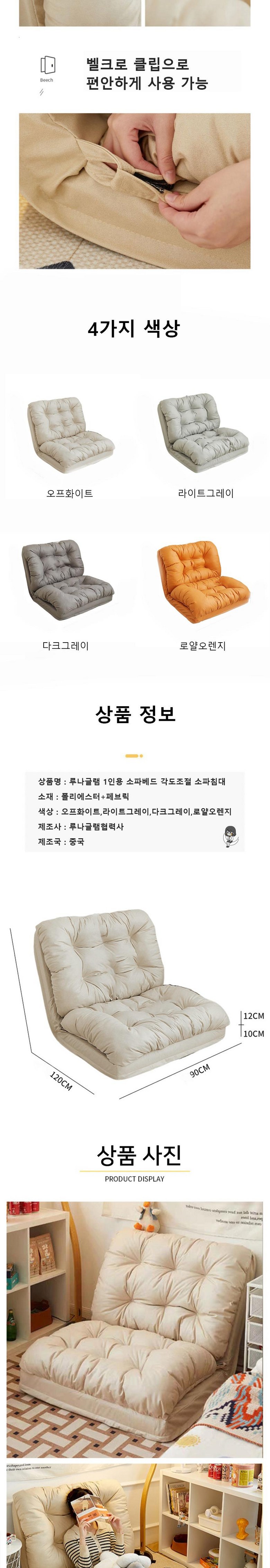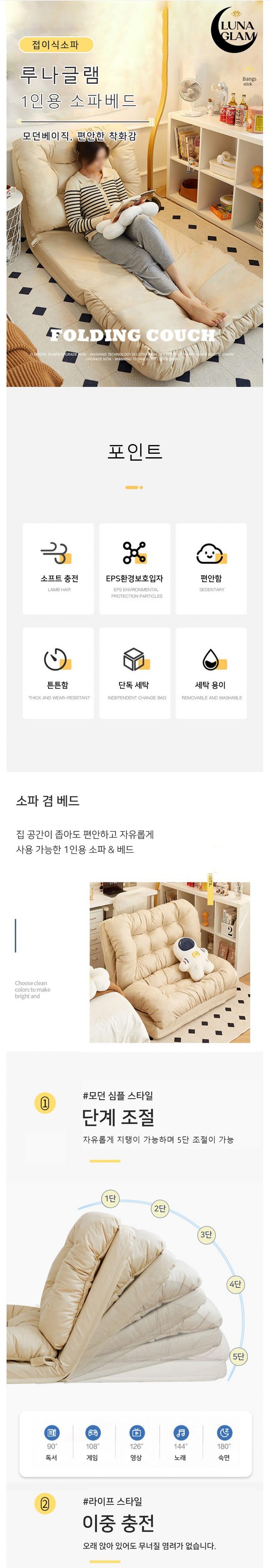 | 품명 및 모델명 | 루나글램 1인용 소파베드 각도조절 소파침대 | 인증/허가 사항 | 상품 상세페이지 참조 |