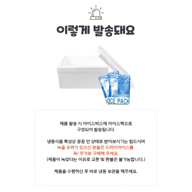 | 배송방법 | 신선/냉장/냉동 | 배송비 | 무료배송 · 도서산간 추가 배송비 - 제주 지역: 7,000원 - 도서산간 지역: 7,000원 |