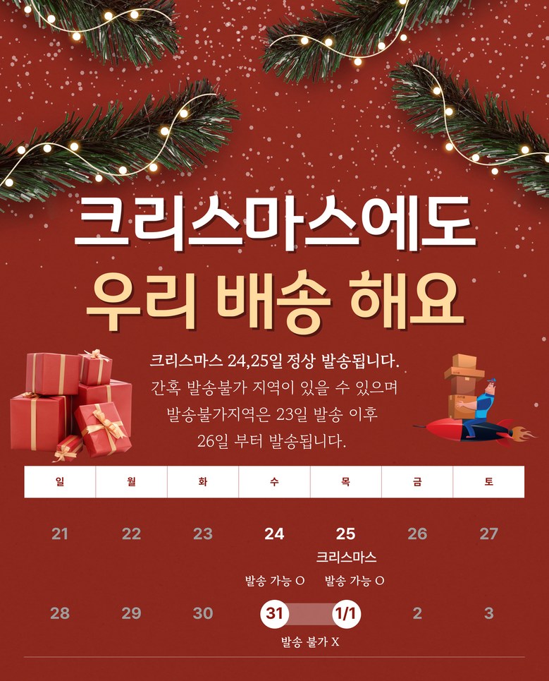 - ㆍ모니터 해상도의 차이로 인해 색상이나 이미지가 실제와 달라, 고객이 단순 변심으로 교환/반품을 무료로 요청하는 경우