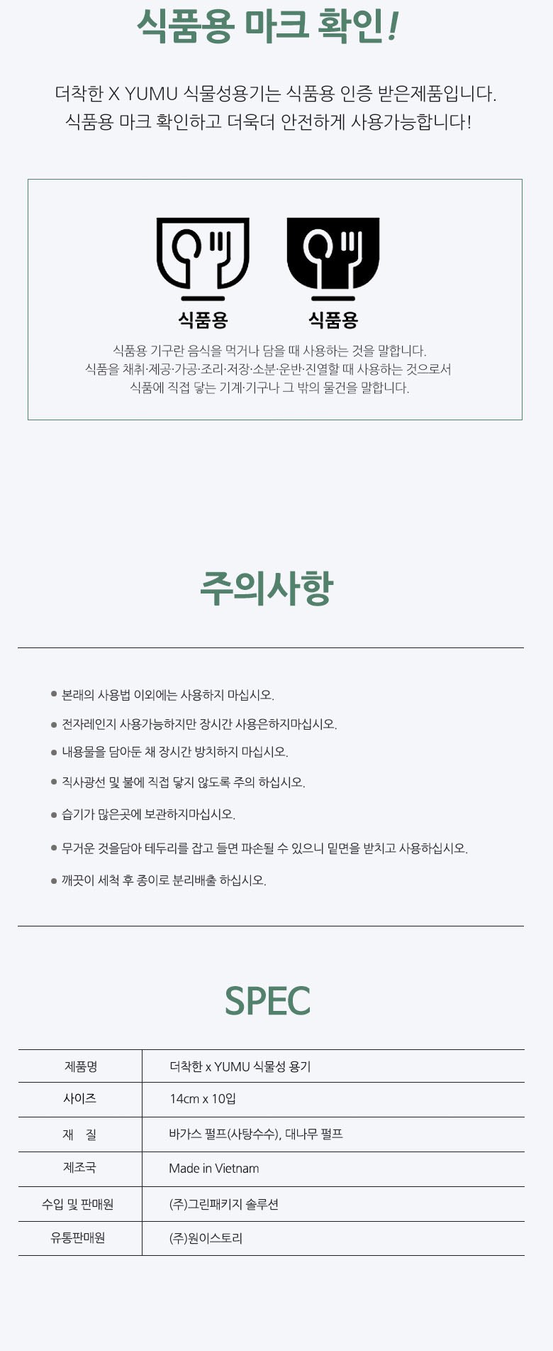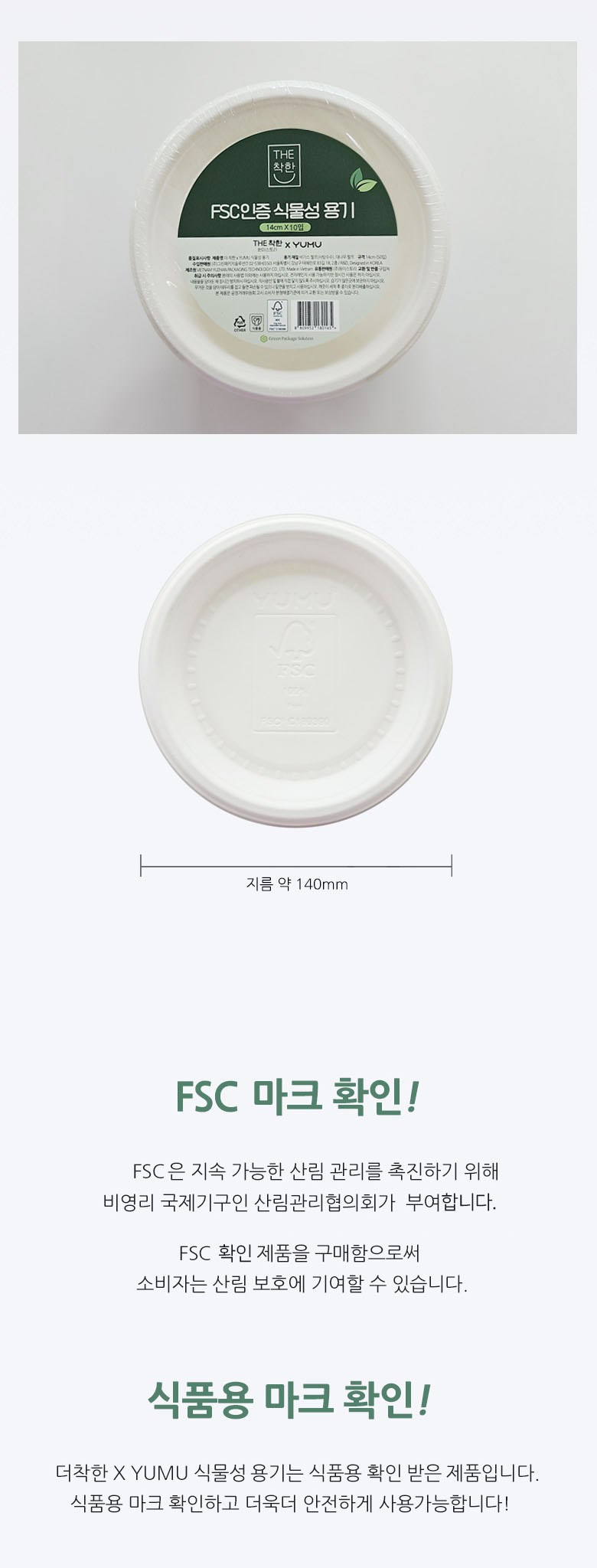 | 품명 및 모델명 | 더착한 x YUMU 식물성 용기 14cm*10입 | 재질 | 컨텐츠 참조 |