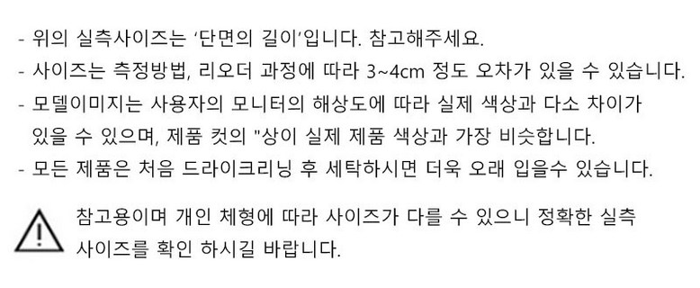 | 제조국 | 상품 상세페이지 참조 | 세탁방법 및 취급시 주의사항 | 상품 상세페이지 참조 |