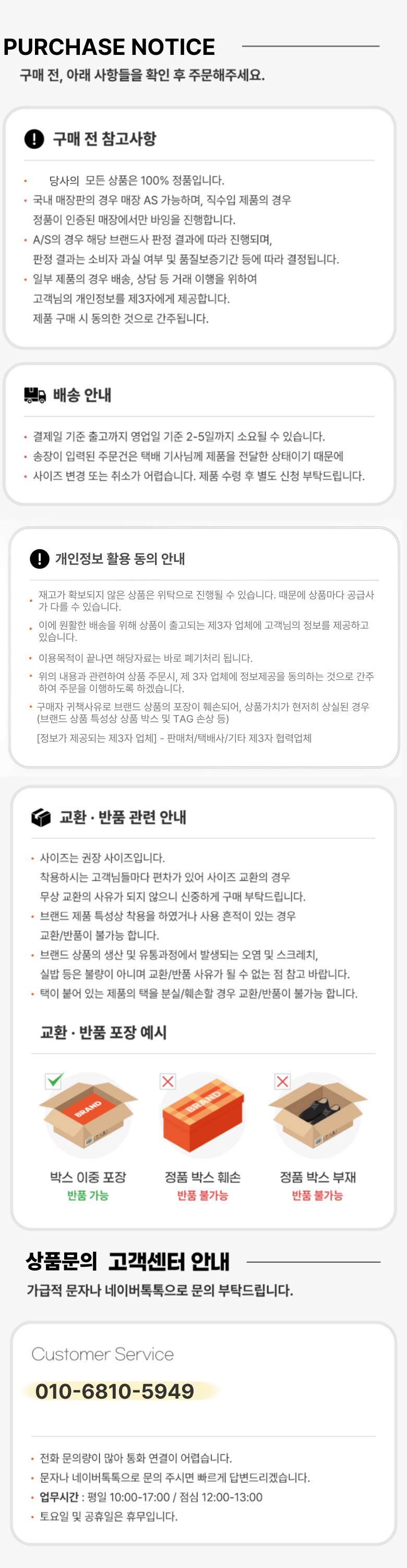 - ㆍ교환/반품에 관한 일반적인 사항은 판매자가 제시사항보다 관계법령이 우선합니다.