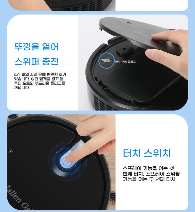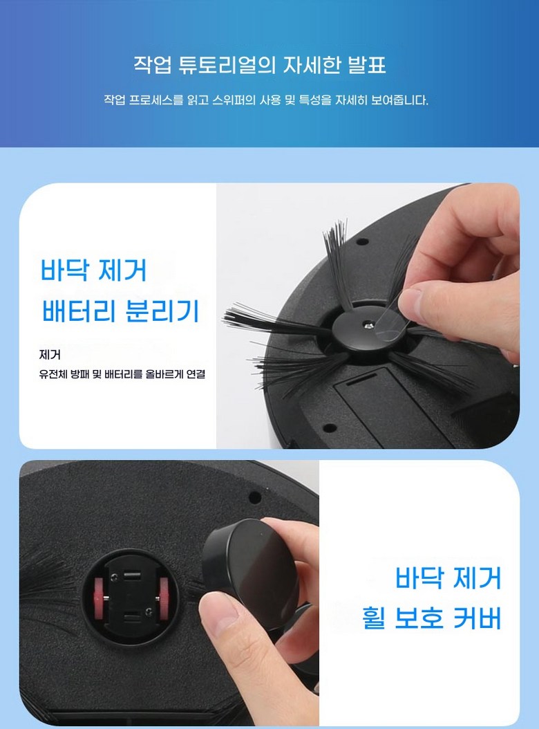 주의: 로봇청소기를 받은 후 배터리 커버의 분리막을 제거해야 합니다.건전지를 제대로 연결해야 제대로 작동할 수 있습니다.