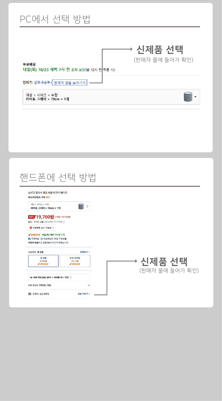 다만, 판매자의 제시사항이 관계법령보다 소비자에게 유리한 경우에는 판매자 제시사항이 적용됩니다.
