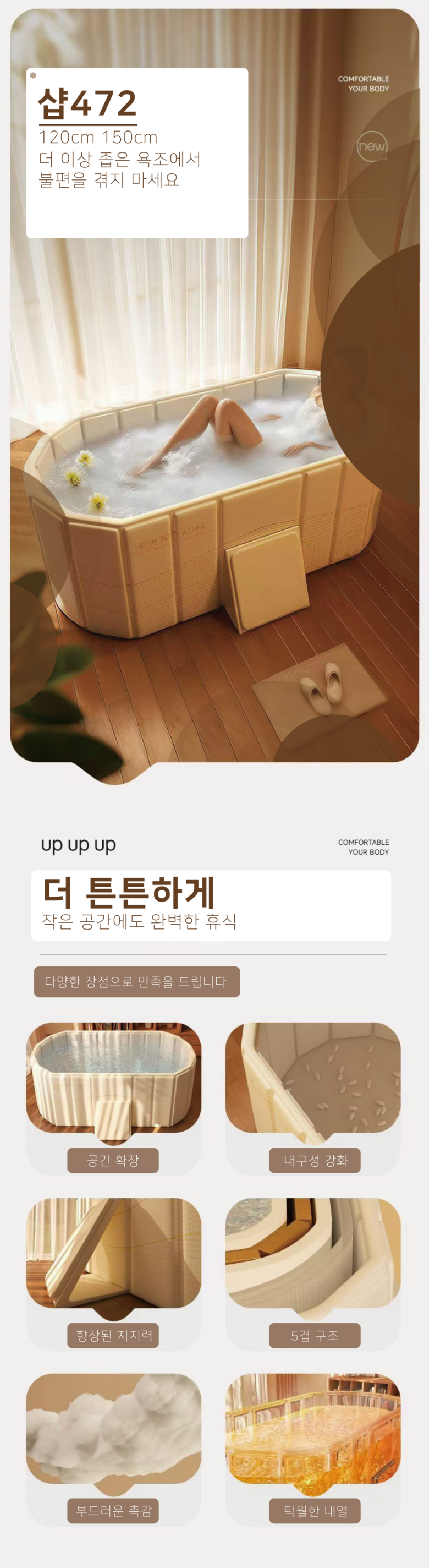 샵472 욕조 대형 접이식욕조 패널형 전신 간이 성인용 이동식 욕조