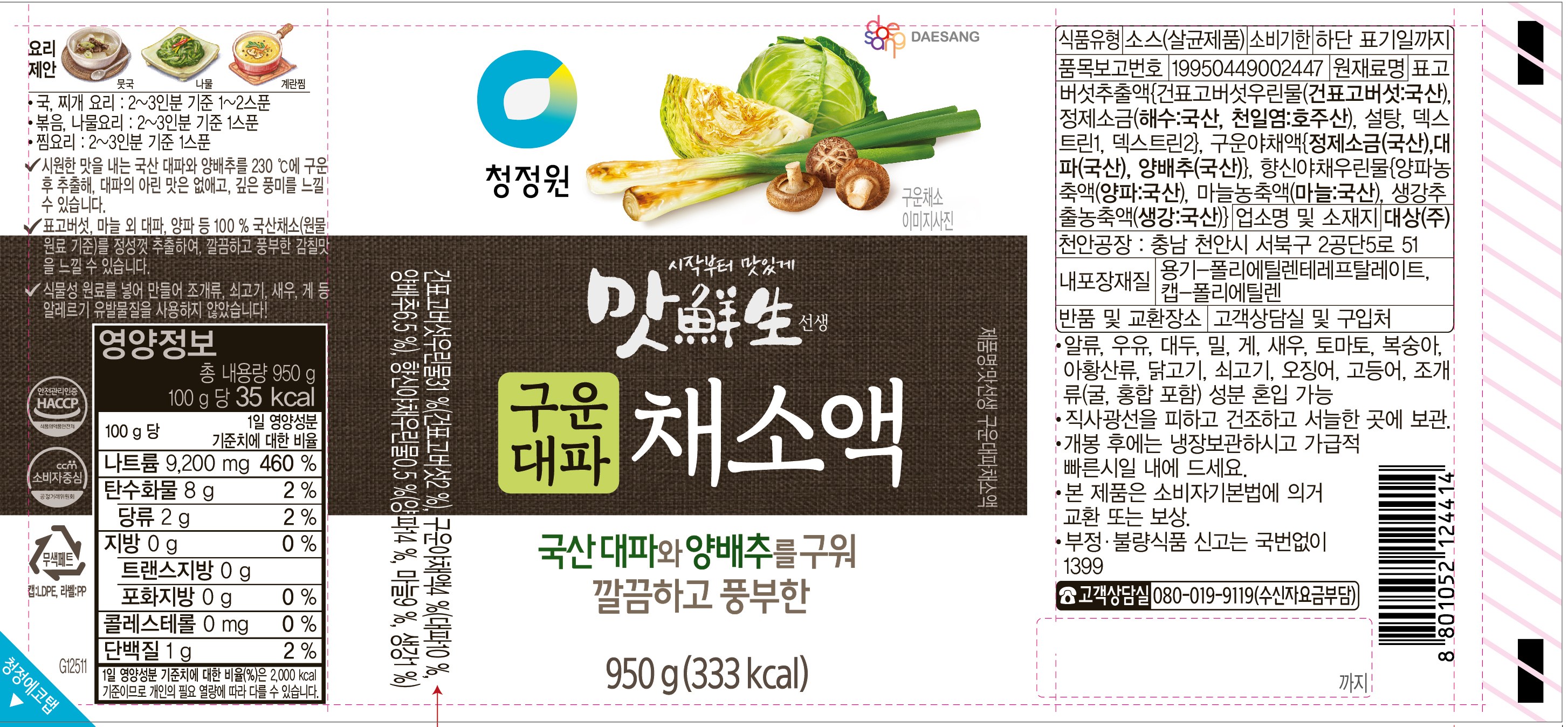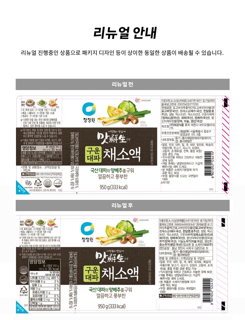 | 제품명 | 맛선생 구운대파채소액 | 식품의 유형 | 컨텐츠 참조 |