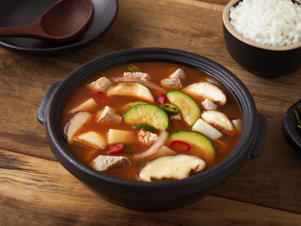 돼지고기구이 전문점 하남돼지집의 고추장찌개예요. 특유의 칼칼하면서도 진한 풍미가 별미인데요. 큐브 모양으로 큼직하게 썬 돼지고기에 이 맛이 쏙쏙 스며든답니다. 여기에 포슬포슬한 감자와 각종 채소도 빠질 수 없죠. 뜨끈한 고추장찌개로 든든한 식탁을 완성해보세요.