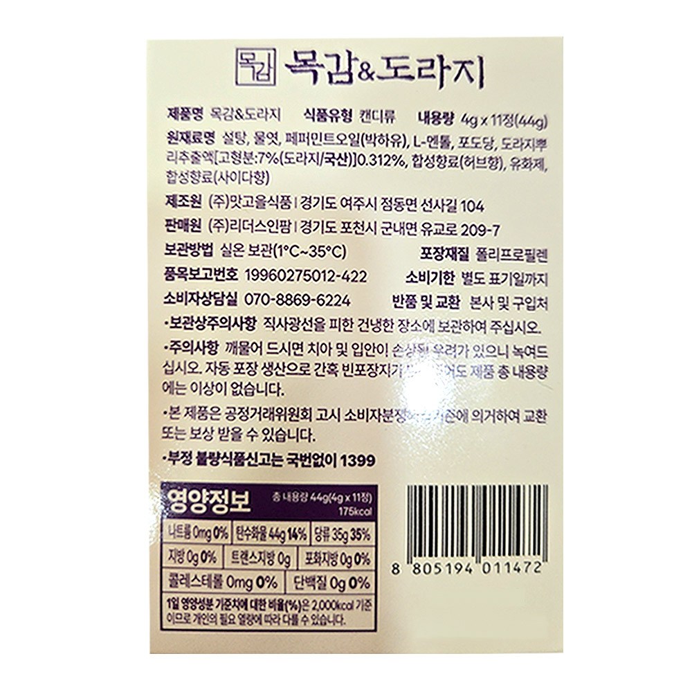 | 포장단위별 내용물의 용량(중량), 수량 | 44g x 5개 | 원재료명 및 함량 | 컨텐츠 참조 |